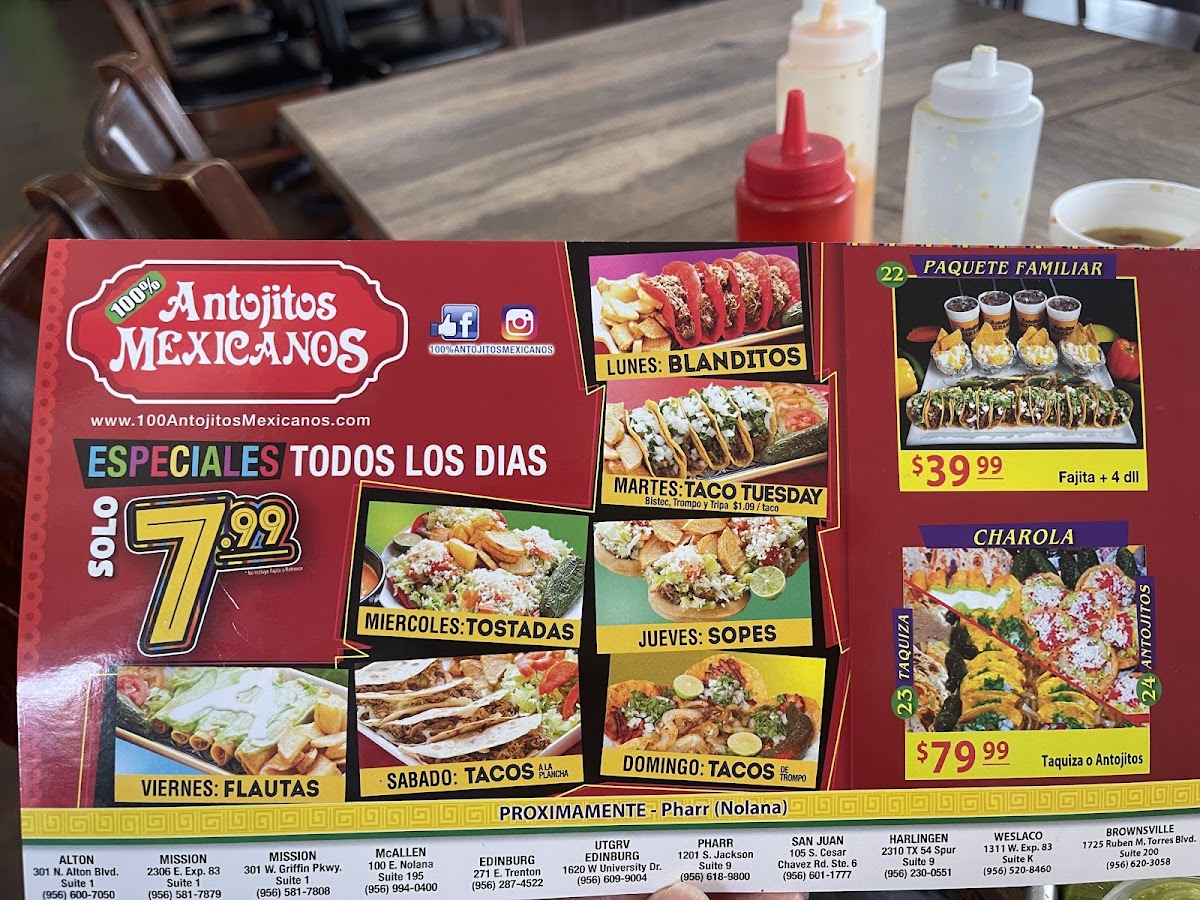100% Antojitos Mexicanos, located in Edinburg, TX, offers a delightful taste of authentic Mexican cuisine. Known for its friendly service and welcoming atmosphere, this restaurant features generous portions of flavorful dishes that leave diners satisfied. Highlights include tacos al trompo, frijoles rancheros, and enchiladas suizas, all prepared with quality ingredients for a homemade feel. Guests rave about the vibrant salsas and the tender steak, underscoring the restaurant's commitment to culinary excellence. With reasonable prices and a spacious environment, 100% Antojitos Mexicanos is a must-visit for anyone craving real Mexican flavors.